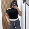Taglio cropped a costine,essenziale e avvolgente per un look pulito e versatile.